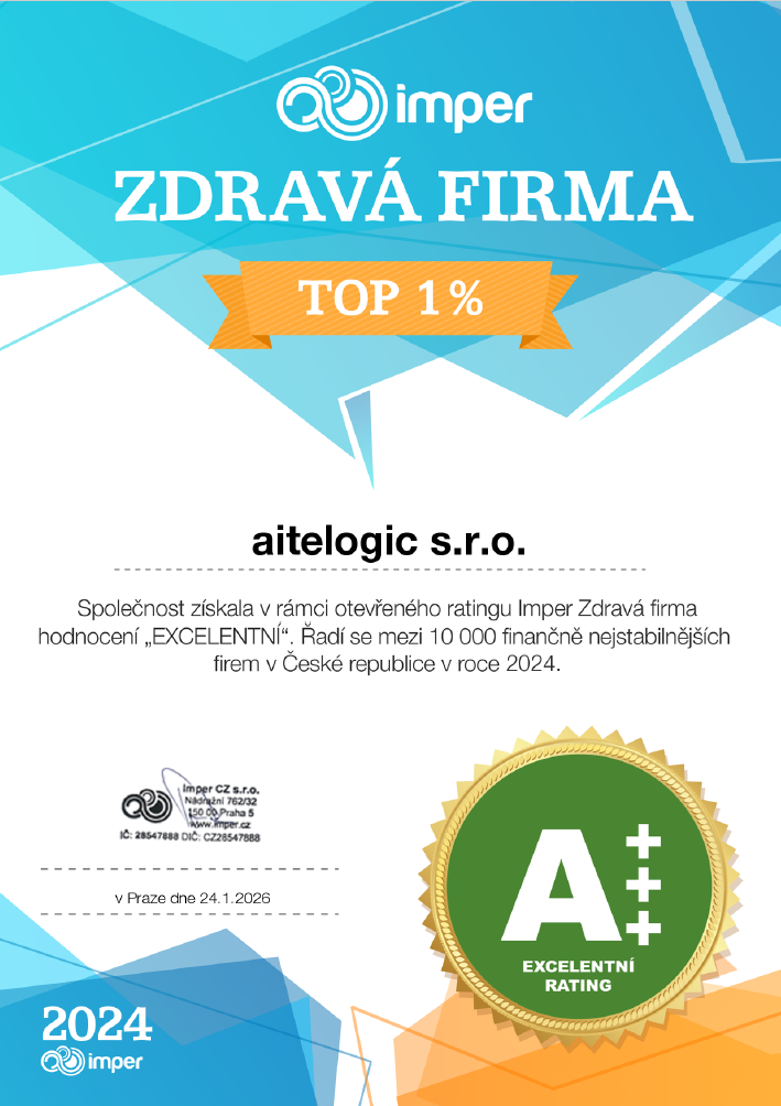 Získali jsme ocenění Imper Zdravá firma 10.4.202215.11.2020 autor: admin Dne 26. března 2022 jsme v rámci otevřeného ratingu Imper Zdravá firma získali hodnocení „Excelentní“ a zařadili se tak mezi 1 procento finančně nejstabilnějších firem v ČR.